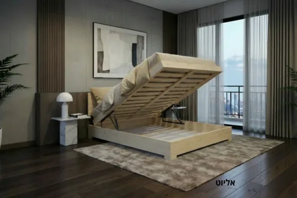 מיטת אליוט – מיטה זוגית מעץ מלא עם ארגז מצעים ענק | AIR-X